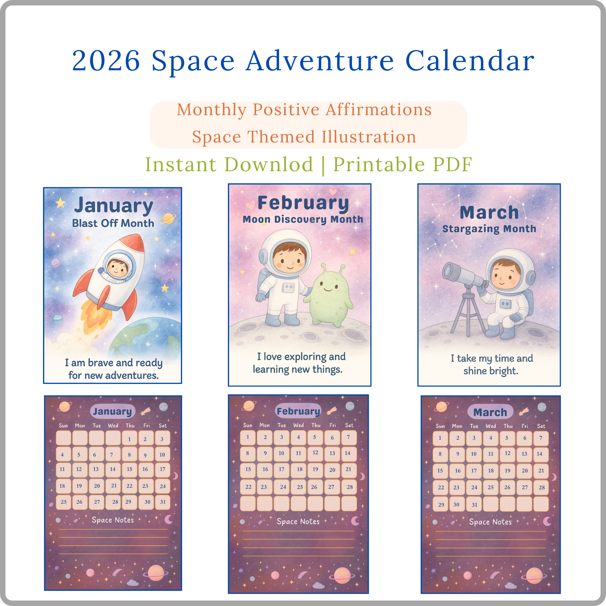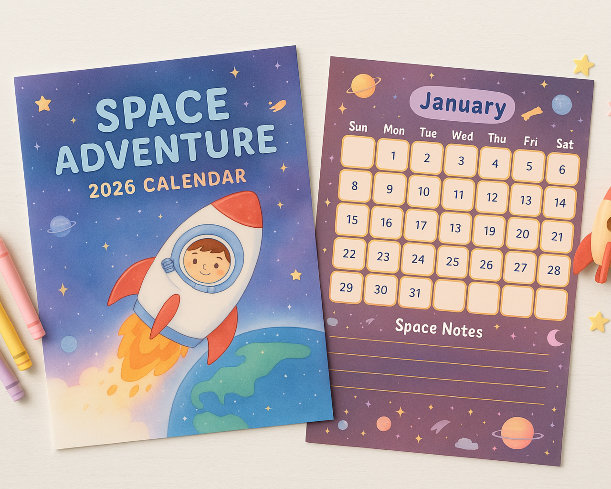 ✨ Blast Off Into 2026 With This Adorable Space Adventure Kids Calendar!