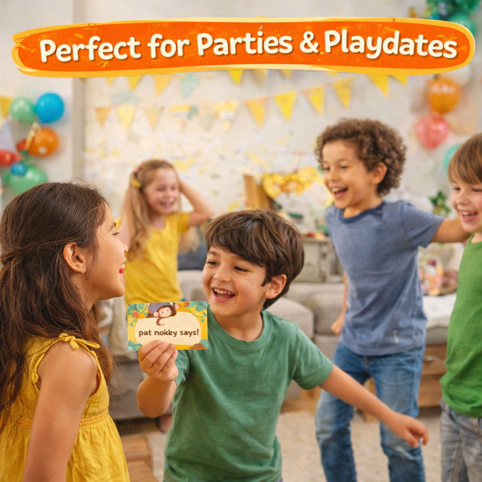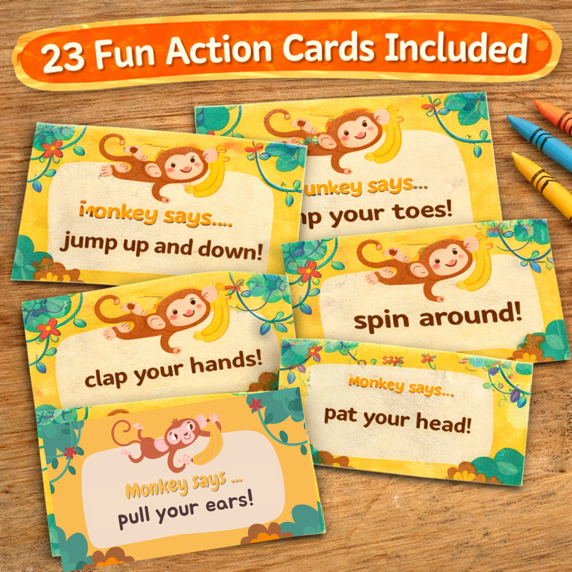 This adorable, interactive movement game is perfect for birthday parties, playdates, classrooms, family gatherings, and rainy-day fun at home. Inspired by the classic “Simon Says” game, this kid-friendly version features a cheerful monkey theme and easy-to-follow action cards.